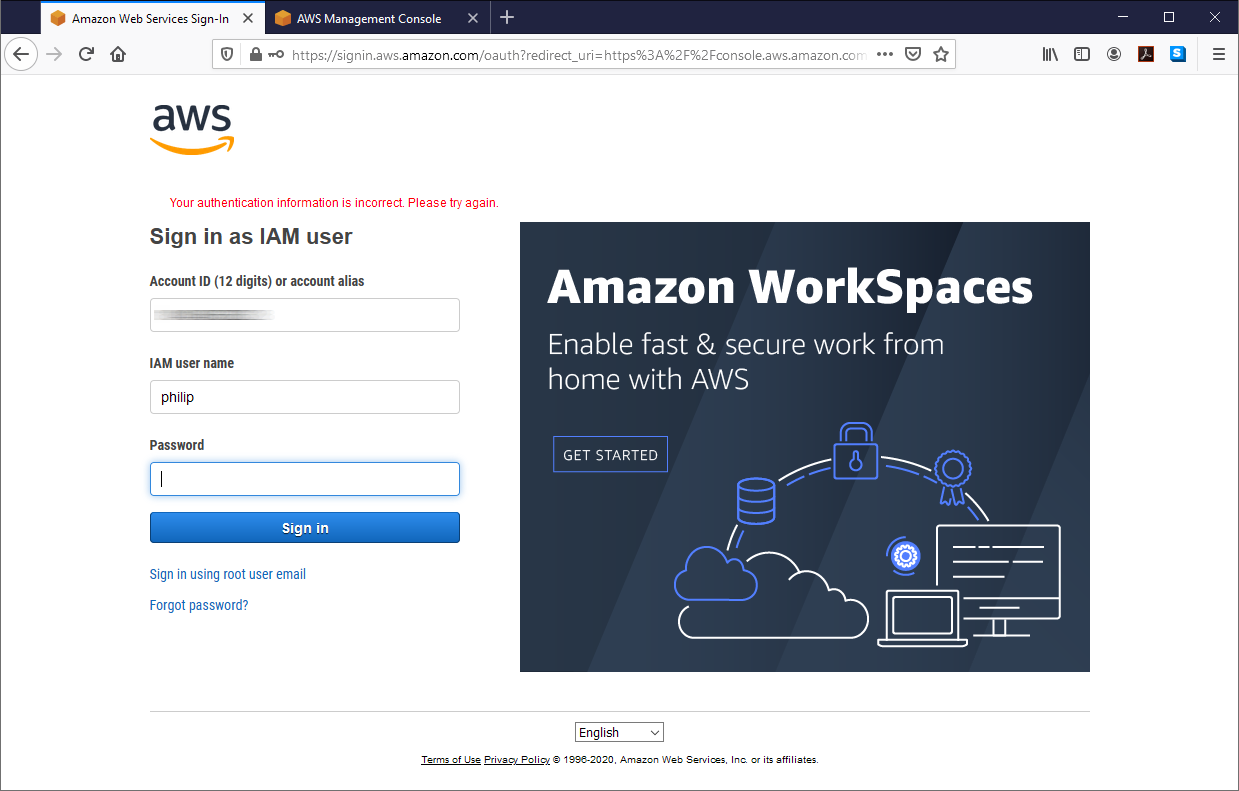 Problems signing in to AWS? When the login page “Sign in as IAM user” repeatedly says: “Your authentication information is incorrect. Please try again” though you entered correct information, your Gemalto token generator for MFA authentication could be out of sync.