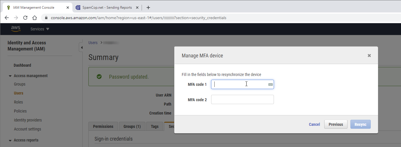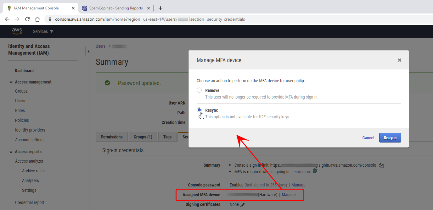 Step 3. Resync the MFA device