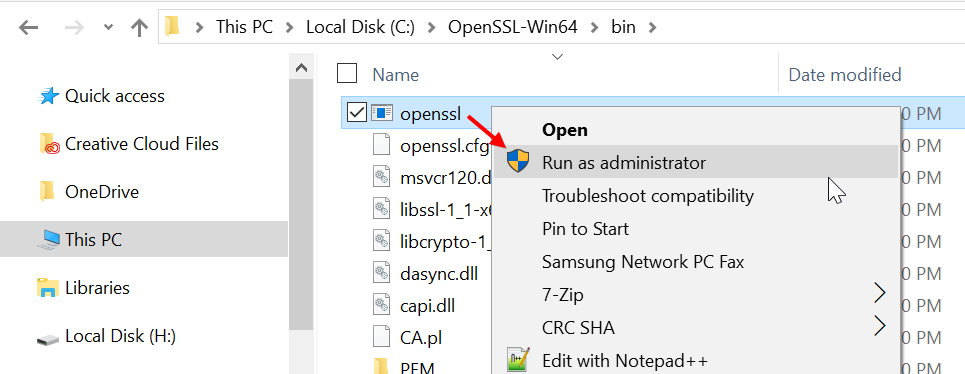 To invoke OpenSSL, you can simply right-click on it in the Windows Explorer at its install location, for example in:
