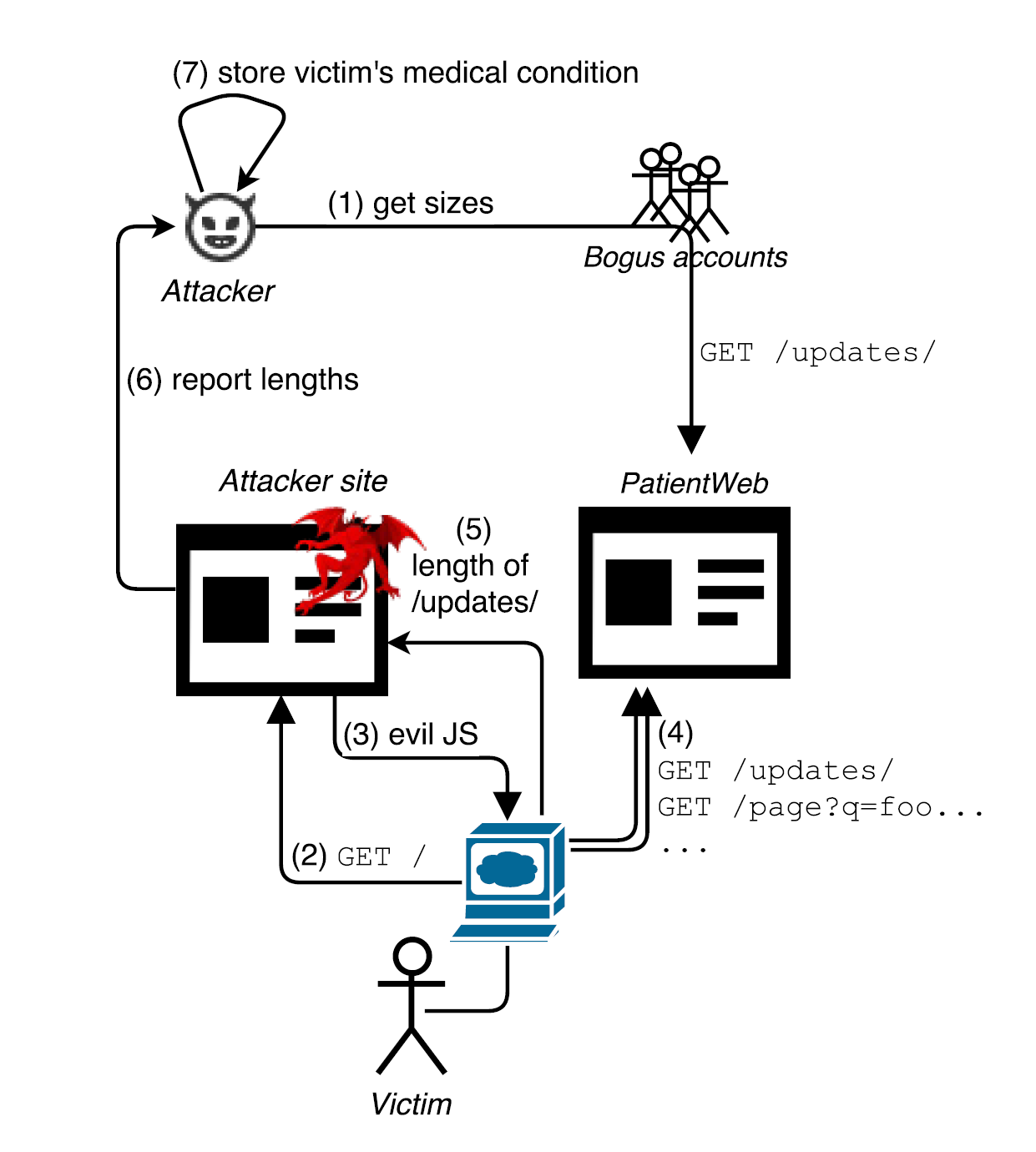 An overview of a HEIST attack scenario: revealing personal user state (source)