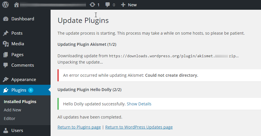 Or, in a more subtle but no less unnerving scenario, your web application may fail to perform activities that depend on its ability to create or write to directories, such as installing or updating plug-ins by WordPress.